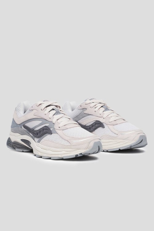Детали: Мужские серо-белые текстильные кроссовки Progrid Omni 9 Premium от Saucony (Сайкони). Замшевые вставки, логотип сбоку и на язычке, классическая шнуровка, закругленный носок, резиновая подошва