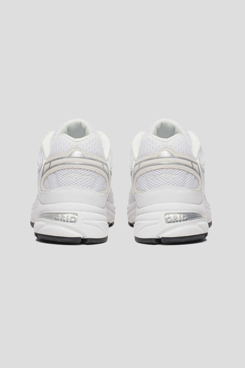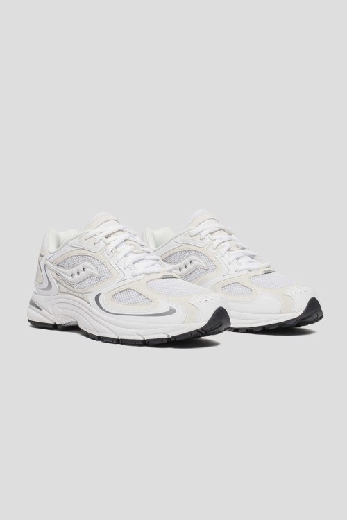 Детали: Мужские белые кроссовки из кожи и текстиля Grid Jazz 9 от Saucony (Сайкони). Комбинация материалов, логотип сбоку и на язычке, классическая шнуровка, закругленный носок, резиновая подошва