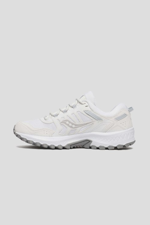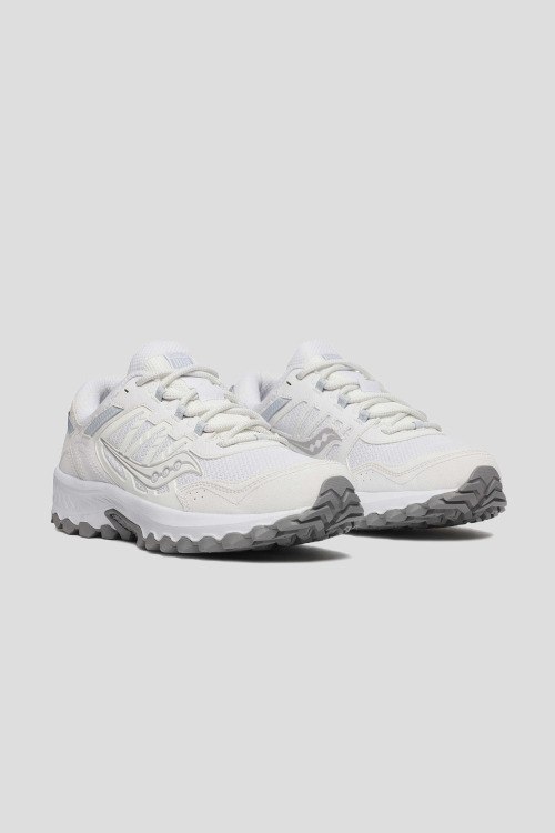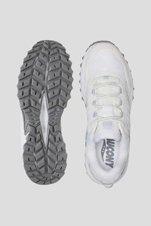 Детали: Мужские белые кроссовки Grid Peak из текстиля от Saucony (Сайкони). Комбинированный дизайн, закругленный носок, спереди классическая шнуровка, патч-лого, рельефная подошва, резиновая подошва XT-900 обеспечивает дополнительное сцепление