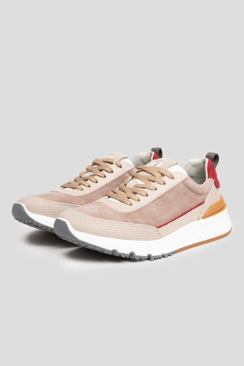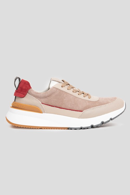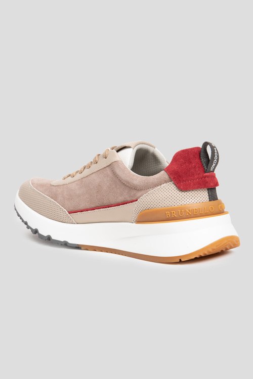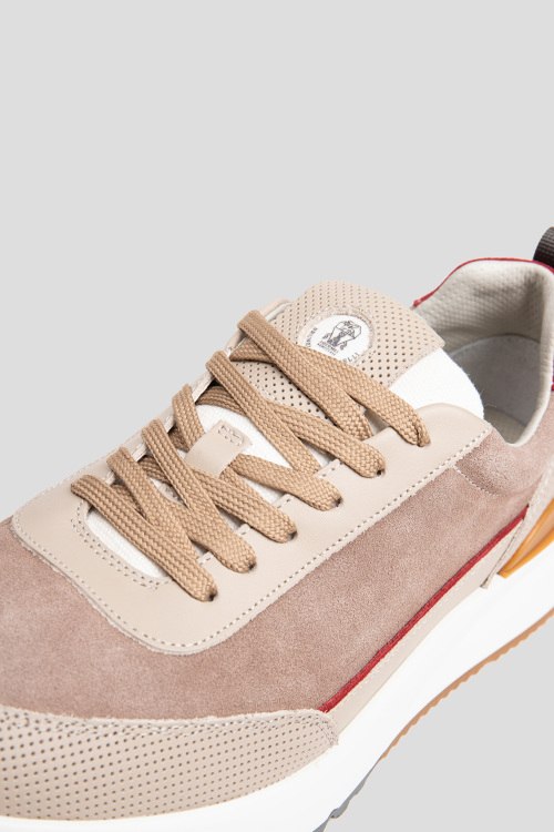 Детали: Мужские бежевые кроссовки из замши и кожи от Brunello Cucinelli (Брунелло Кучинелли). Комбинация цветов и материалов, логотип на язычке и на пятке, классическая шнуровка, петля для подтягивания сзади, закругленный носок. Обувь категории outlet, коробка может быть повреждена