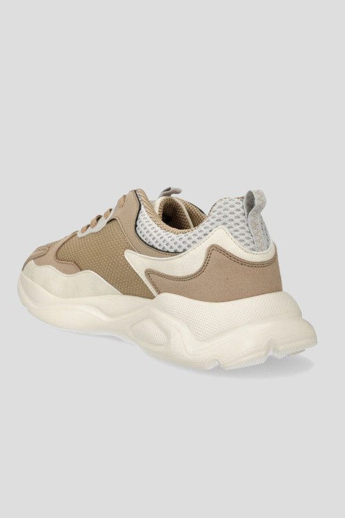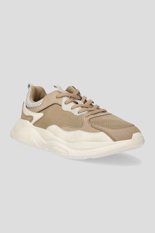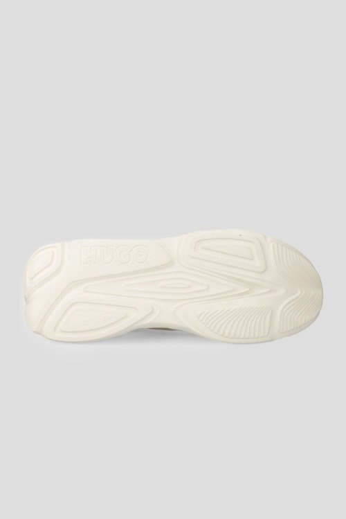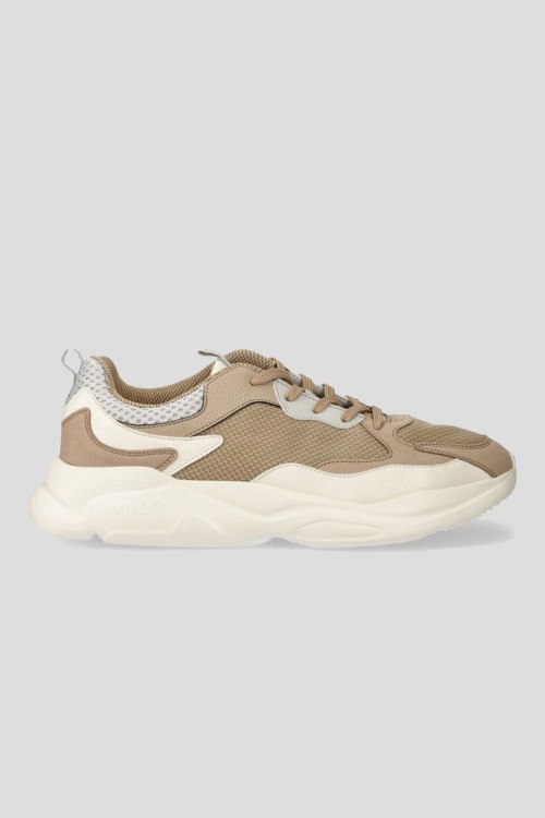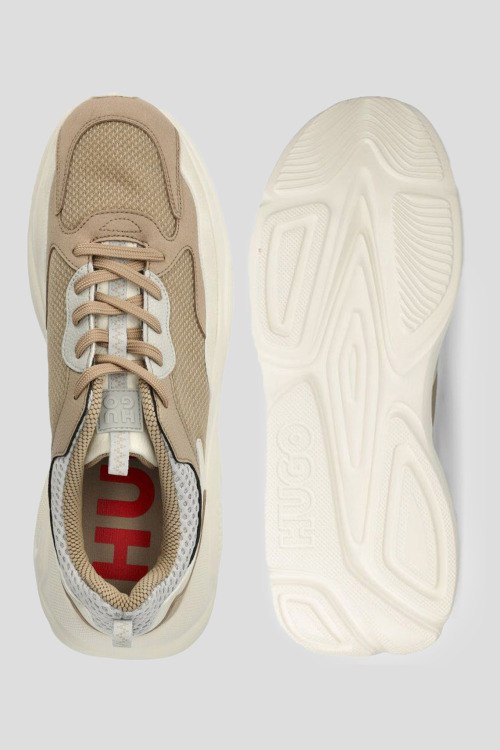 Мужские бежевые текстильные кроссовки Leon Runn от Hugo by Hugo Boss (Хуго бай Хуго Босс). Логотип на язычке, классическая шнуровка, две петли для подтягивания, закругленный носок, светлая подошва