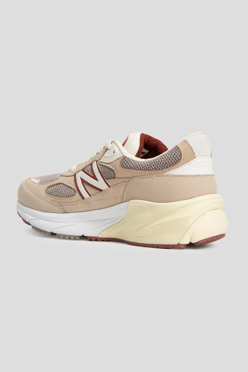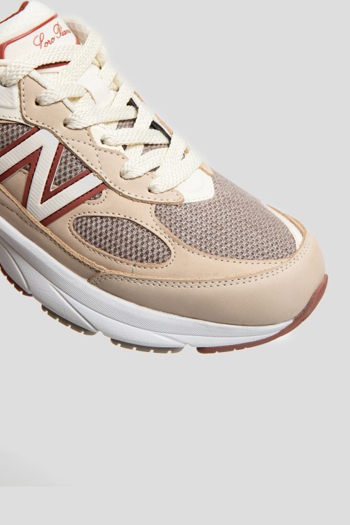 Мужские бежевые кроссовки из натуральной кожи и текстиля от Loro Piana (Лоро Пьяна). Комбинация цветов и материалов, закругленный носок, спереди классическая шнуровка, патч-лого, сетчатые вставки, резиновая подошва