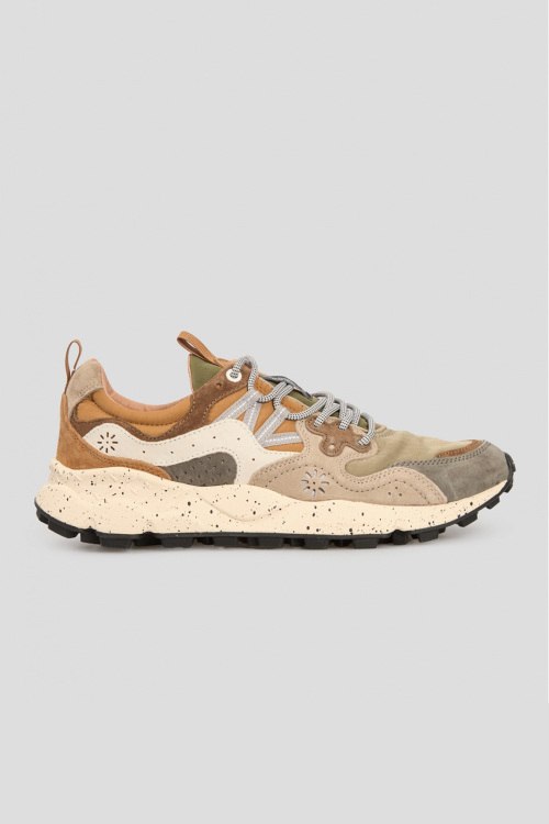 Детали: Мужские бежевые кроссовки из натуральной кожи и текстиля от Flower Mountain (Флауэр Маунтин). Дизайн в виде комбинации цветов и материалов, закругленный носок, спереди шнуровка, патч-лого, петли для подтягивания, рельефная подошва. Высота подошвы: 3,5 см