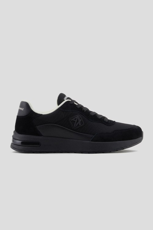 Детали: Мужские черные текстильные кроссовки от Armani Exchange (Армани Эксчендж). Замшевые вставки, логотип сбоку, на язычке и на пятке, классическая шнуровка, закругленный носок, черная подошва