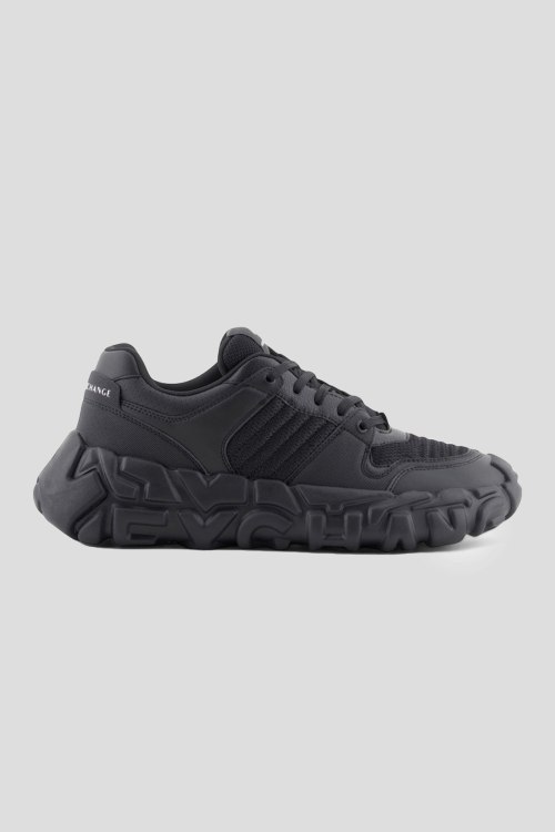 Детали: Мужские черные кроссовки от Armani Exchange (Армани Эксчендж). Закругленный носок, спереди шнуровка, массивная подошва, патч-лого
