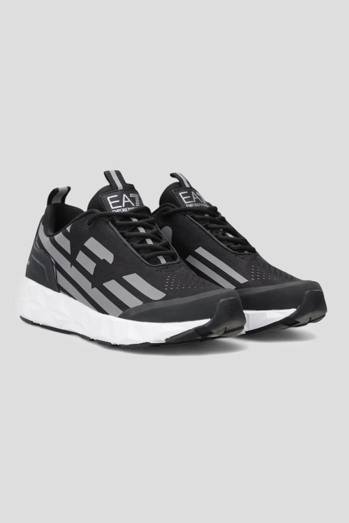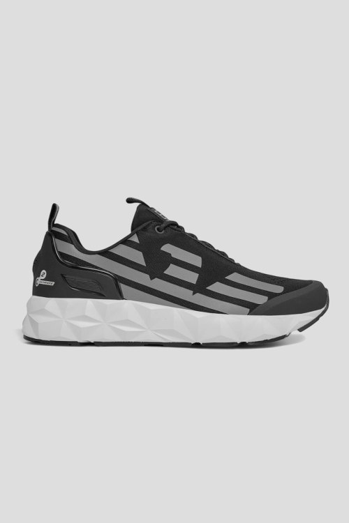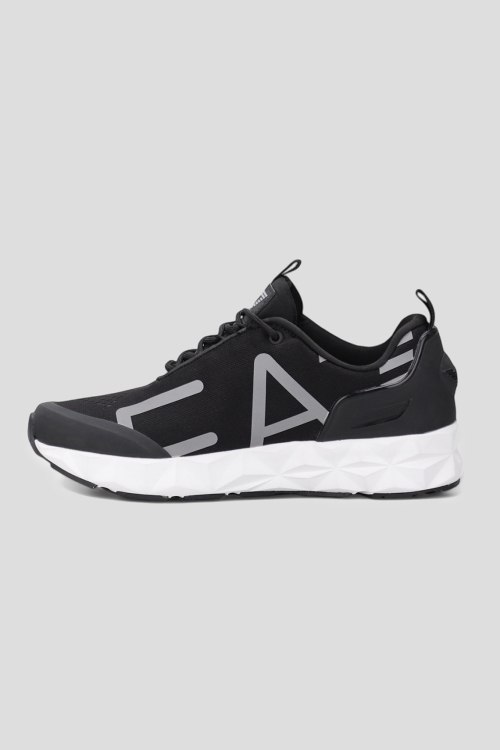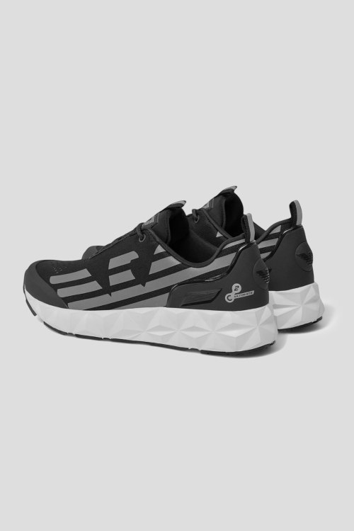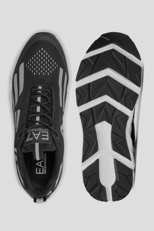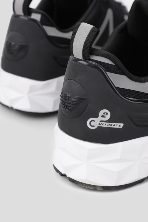 Мужские черные кроссовки Ultimate C2 Kombat от EA7 Emporio Armani (ЕА7 Эмпорио Армани). Закругленный носок, дизайн с брендированным принтом, резиновая подошва, спереди классическая шнуровка, патч-лого