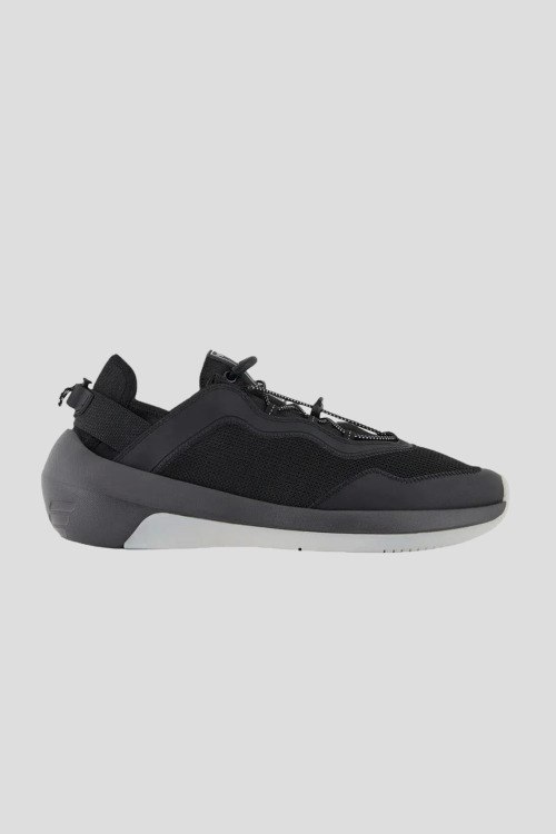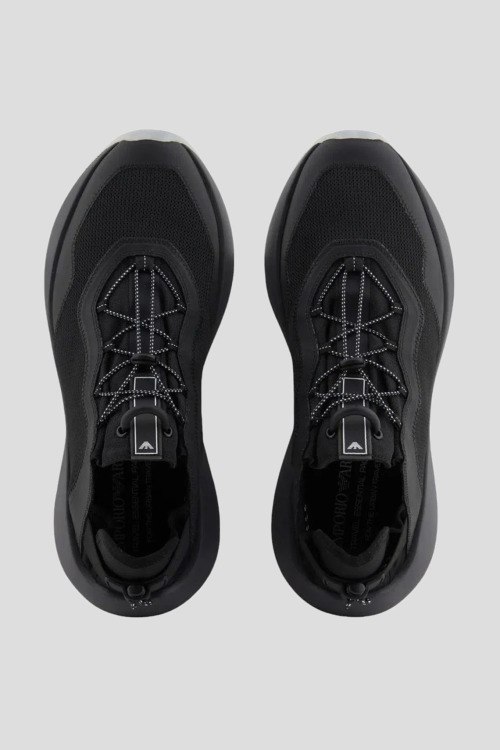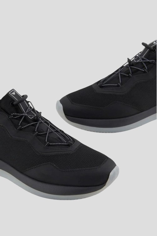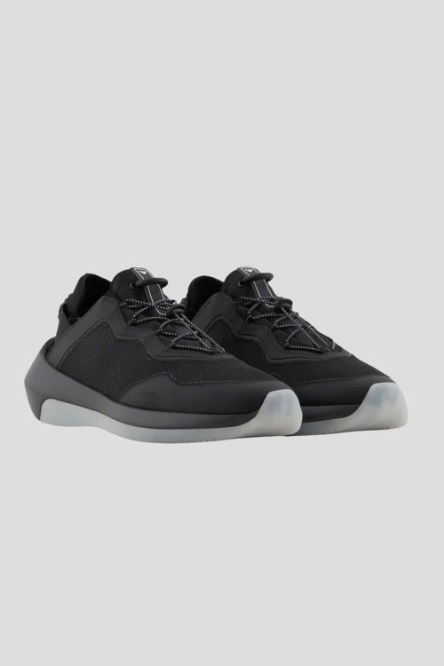 Детали: Мужские черные текстильные кроссовки от Emporio Armani (Эмпорио Армани). Логотип на язычке, шнуровка на затяжке, закругленный носок, резиновая подошва