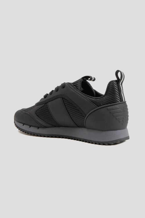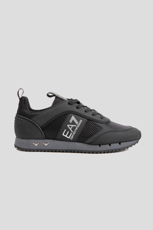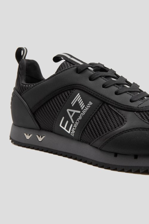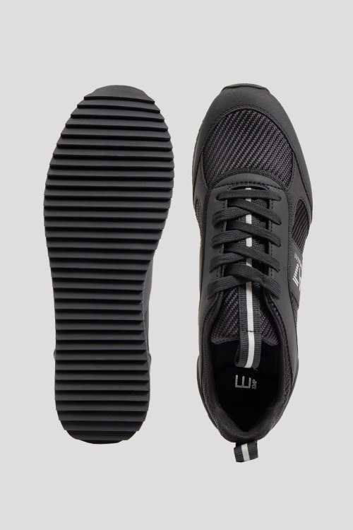 Детали: Мужские черные кроссовки из текстиля и экокожи от Armani (Армани). Комбинация материалов, закругленный носок, спереди шнуровка, петли для подтягивания, рельефная подошва