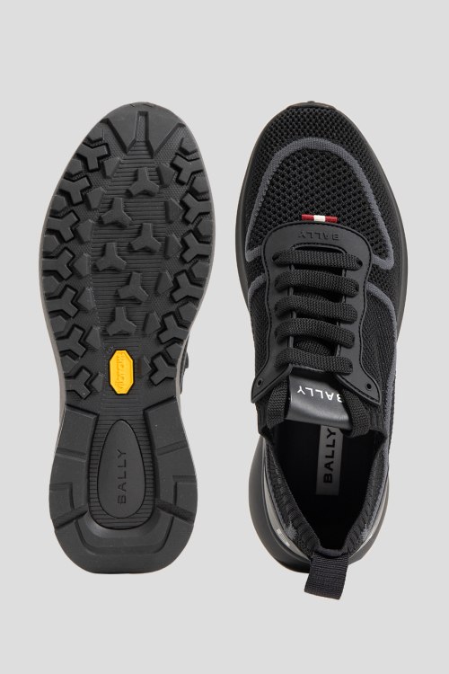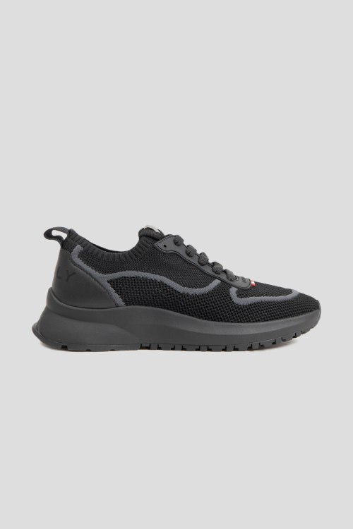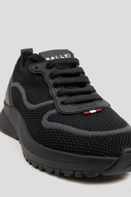 Детали: Мужские черные текстильные кроссовки от Bally (Балли). Вставки из экокожи спереди и на заднике, классическая длина, логотип бренда, рельефная подошва, петля для подтягивания