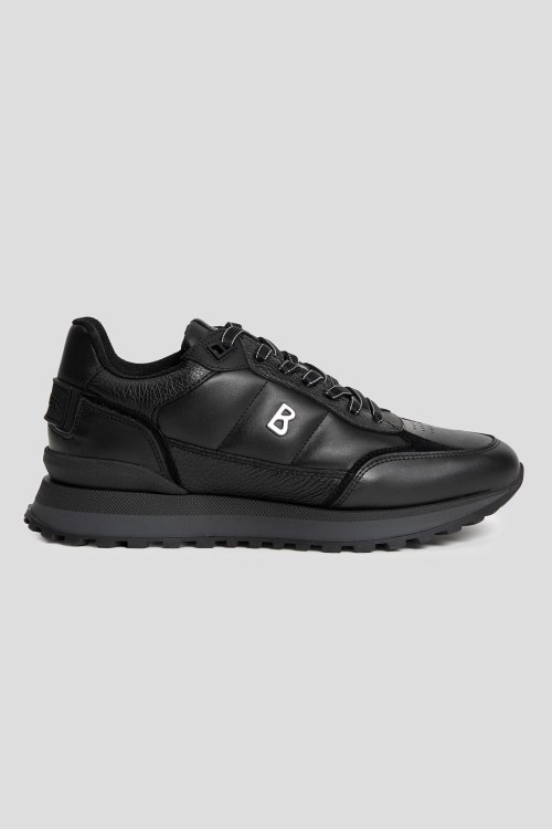 Детали: Мужские черные кожаные кроссовки Newport 1А от Bogner (Богнер). Модель из гладкой кожи, логотип сбоку, на язычке и на пятке, классическая шнуровка, закругленный носок