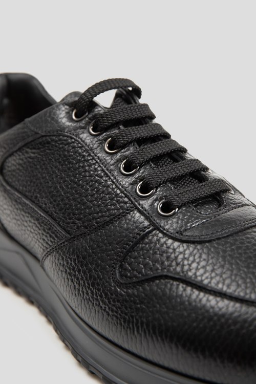 Детали: Мужские черные кроссовки из натуральной кожи от Doucal's (Дукалс). Закругленный носок, спереди классическая шнуровка, модель утепленная шерстью, кожаная стелька, рельефная подошва