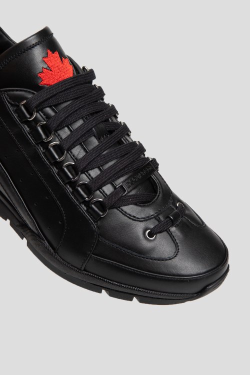 Детали: Мужские черные кожаные кроссовки от Dsquared2 (Дискваред). Модель из гладкой кожи, логотип сбоку и на язычке, классическая шнуровка, закругленный носок, черная подошва