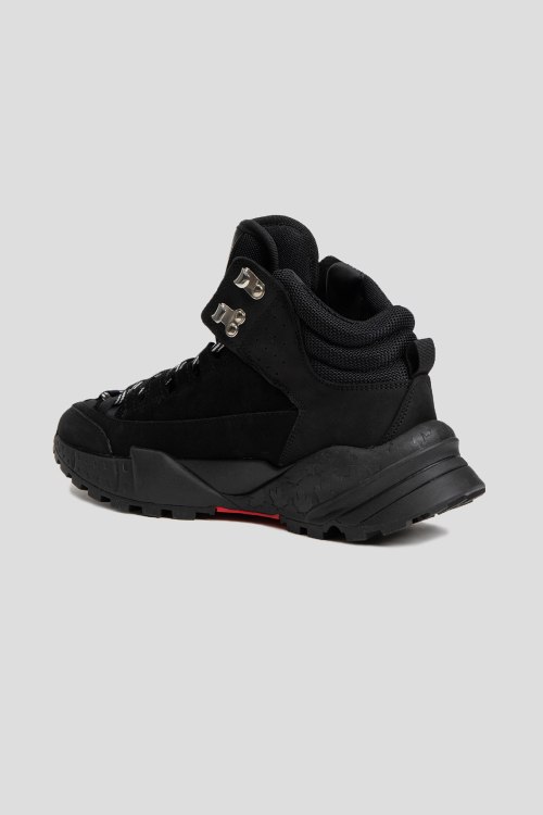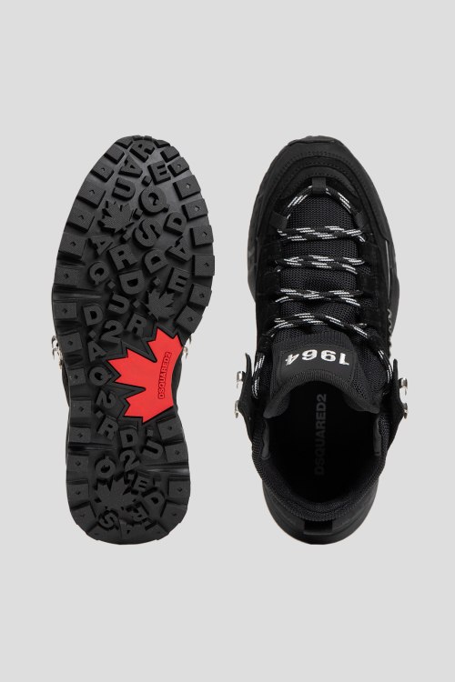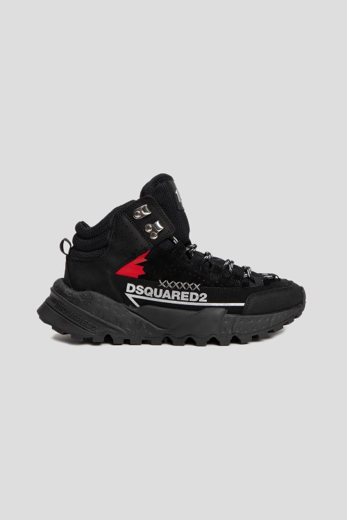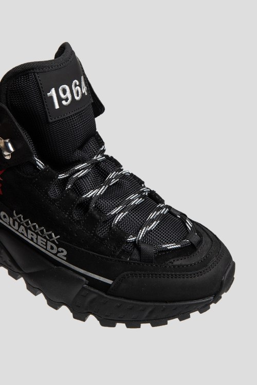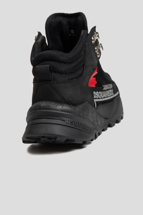 Детали: Мужские черные кроссовки из замши и текстиля от Dsquared2 (Дискваред). Комбинация материалов, логотип сбоку и на язычке, классическая шнуровка, петля для подтягивания сзади, закругленный носок, массивная подошва