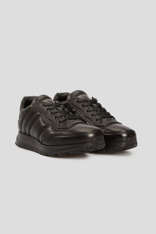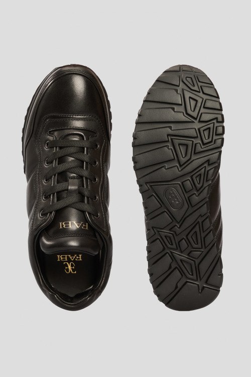 Детали: Мужские черные кроссовки из натуральной кожи от Fabi (Фаби). Закругленный носок, спереди шнуровка, рельефная подошва, логотип бренда