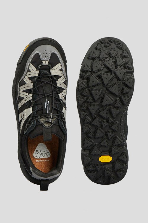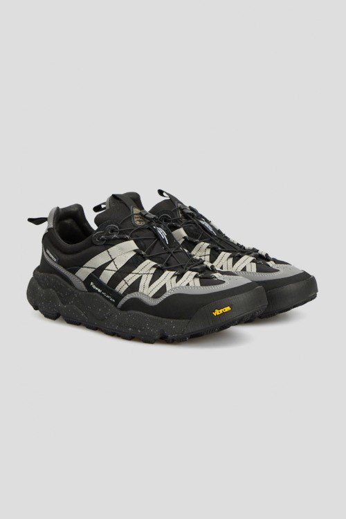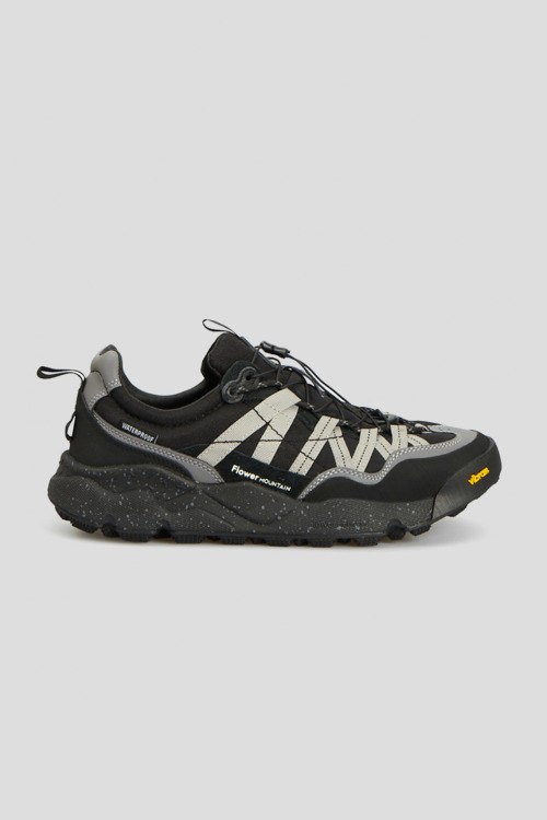 Детали: Мужские черные кроссовки из кожи и текстиля от Flower Mountain (Флауэр Маунтин). Комбинация цветов и материалов, логотип на язычке, классическая шнуровка, две петли для подтягивания, закругленный носок. Высота подошвы: 4 см