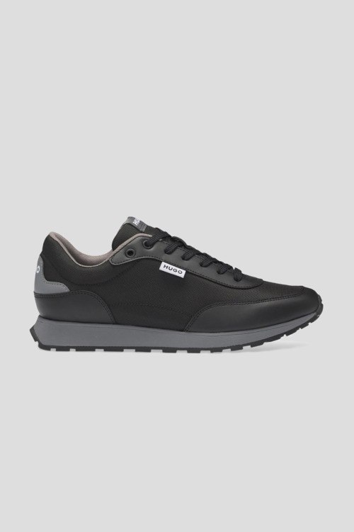 Детали: Мужские черные текстильные кроссовки Icelin от Hugo Boss (Хуго Босс). Логотип сбоку, на язычке и на пятке, классическая шнуровка, закругленный носок, ребристая подошва
