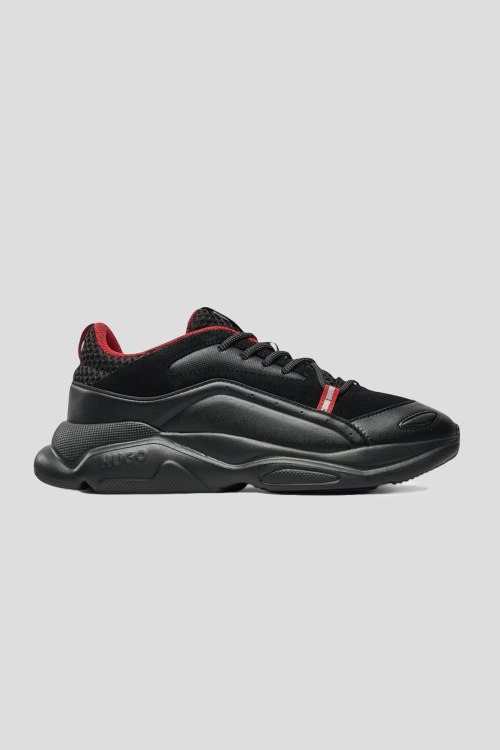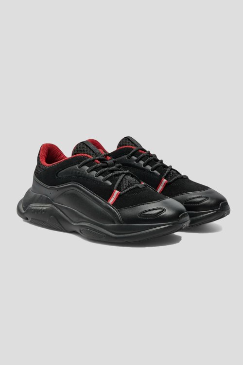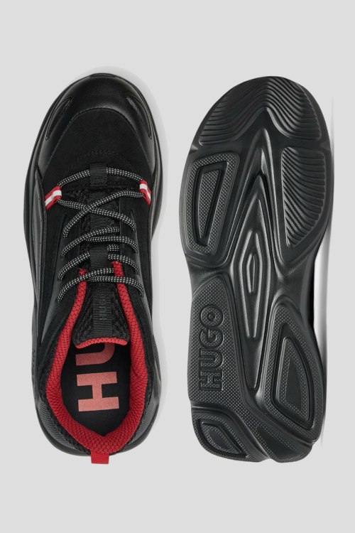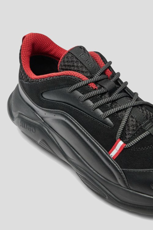 Детали: Мужские черные кроссовки из кожи и замши Leon Runn от Hugo by Hugo Boss (Хуго бай Хуго Босс). Комбинация материалов, классическая шнуровка, закругленный носок, брендированная подошва