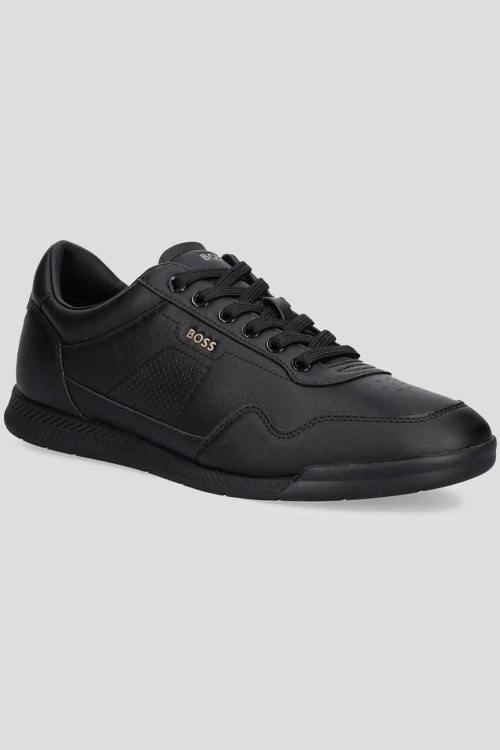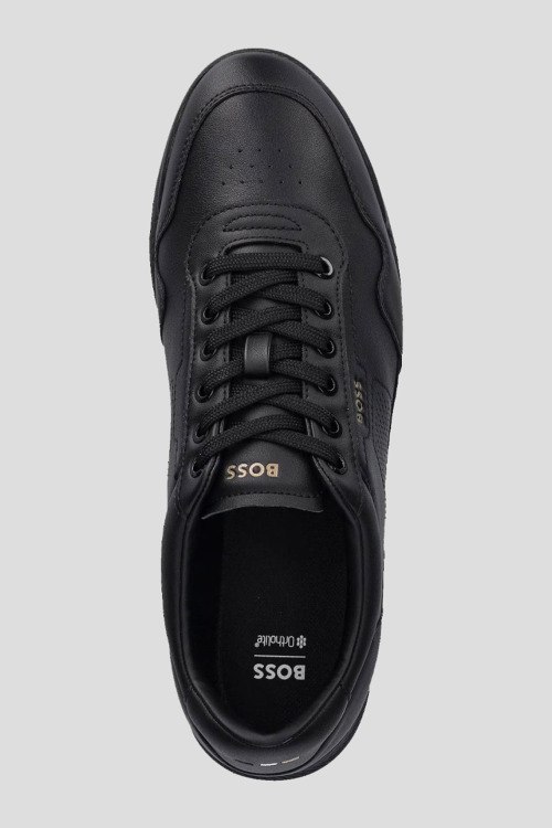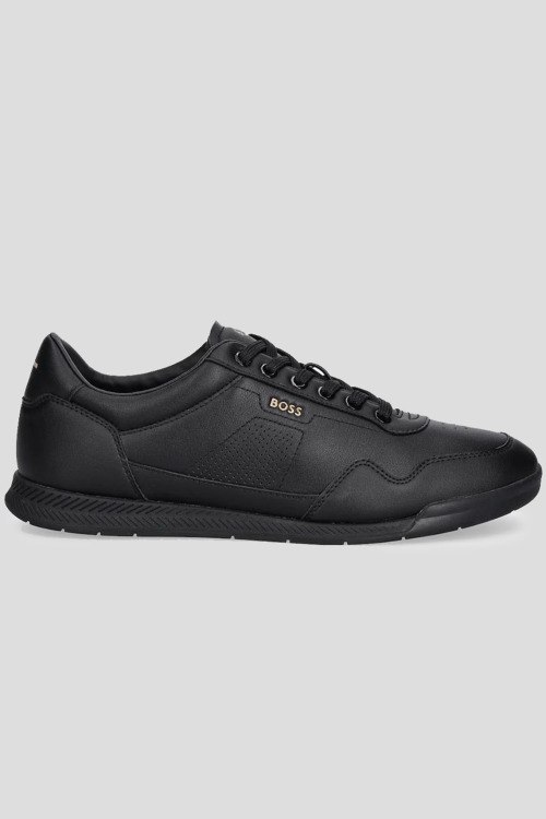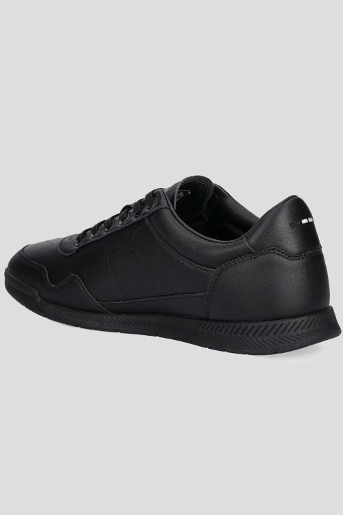 Детали: Мужские черные кроссовки из экокожи Nitan от Hugo Boss (Хуго Босс). Модель из гладкой кожи, логотип сбоку и на язычке, классическая шнуровка, закругленный носок, резиновая подошва
