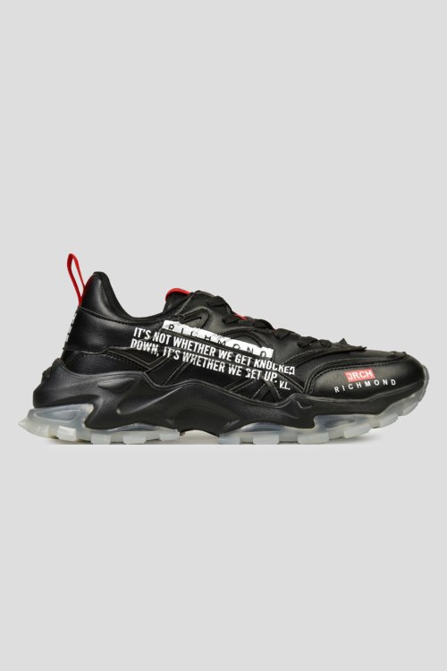 Детали: Мужские черные кожаные кроссовки от John Richmond (Джон Ричмонд). Модель из гладкой кожи, принт сбоку, классическая шнуровка, петля для подтягивания сзади, закругленный носок