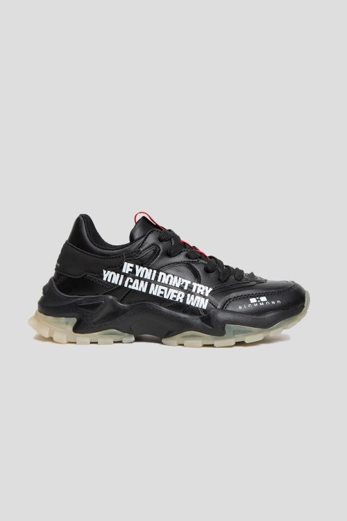 Детали: Мужские черные кроссовки из экокожи от John Richmond (Джон Ричмонд). Модель из гладкой кожи, принт с надписью и логотипом сбоку, классическая шнуровка, закругленный носок, резиновая подошва