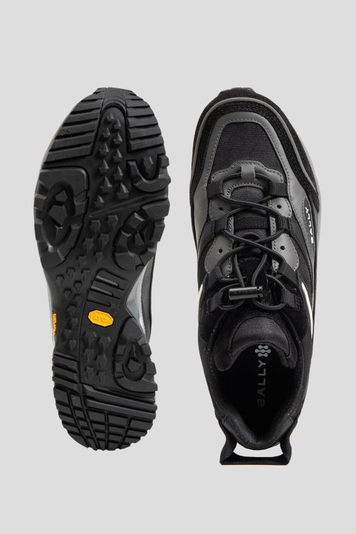 Детали: Мужские черные кроссовки из натуральной кожи и текстиля от Bally (Балли). Закругленный носок, спереди эластичная резинка, логотип бренда, резиновая подошва, текстильная подкладка и стелька