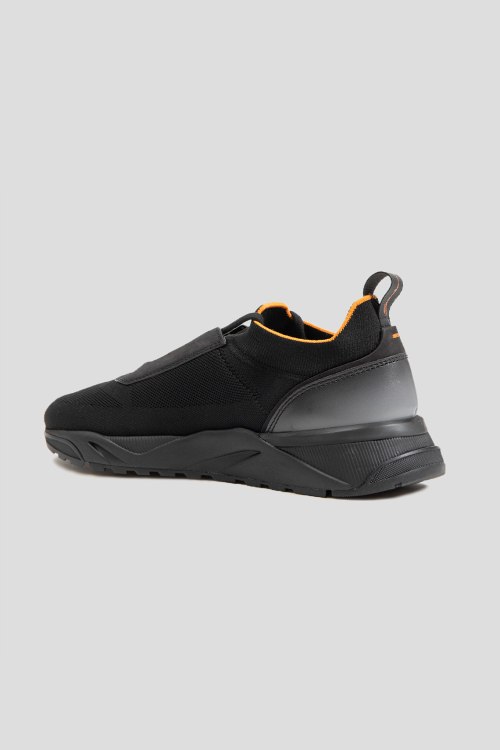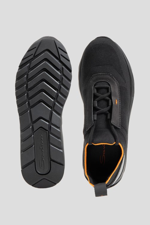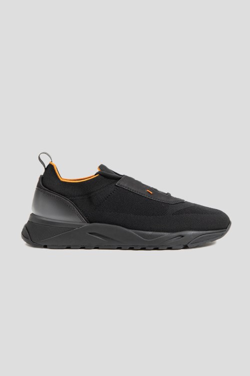 Детали: Мужские черные кроссовки из текстиля и нубука от Santoni (Сантони). Закругленный носок, спереди классическая шнуровка, комбинация материалов, резиновая подошва, кожаная стелька, петля для подтягивания