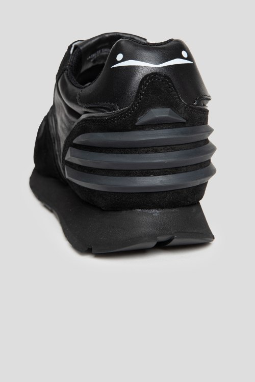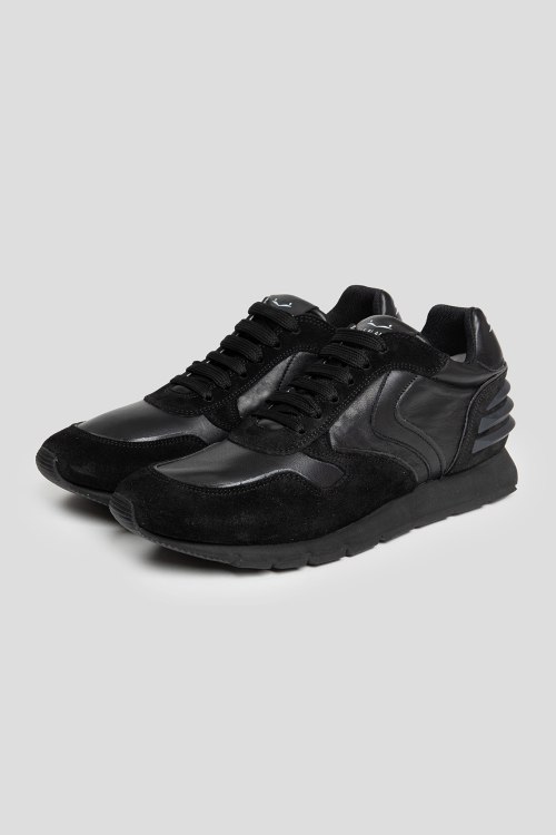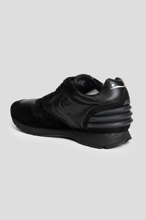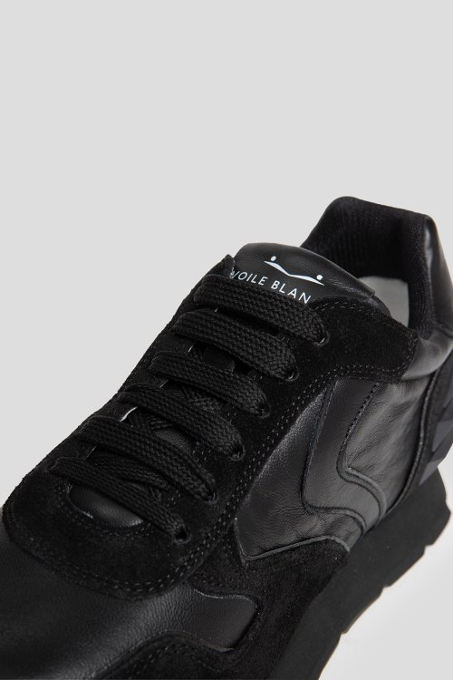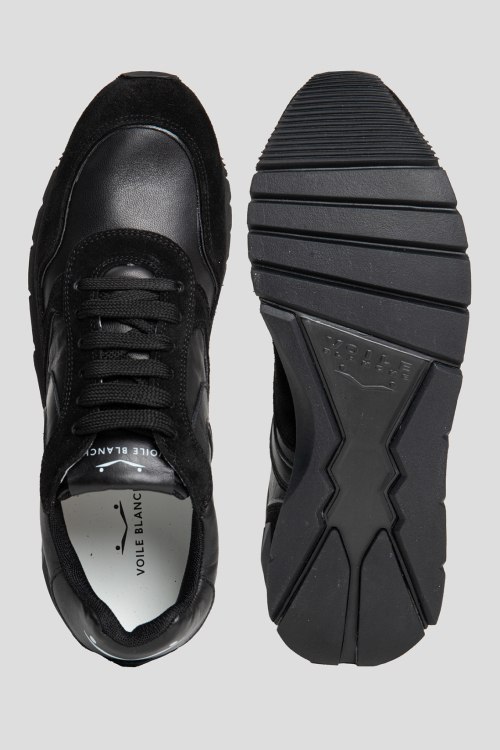 Детали: Мужские черные кроссовки из кожи и замши от Voile Blanche (Вуаль Бланш). Комбинация материалов, логотип на язычке, классическая шнуровка, закругленный носок, черная подошва