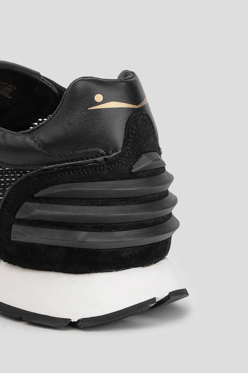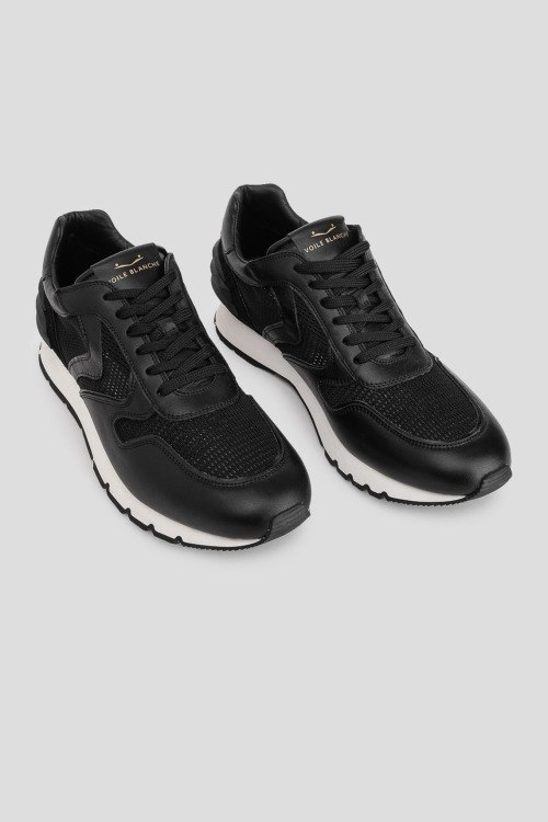 Мужские черные кроссовки из кожи и текстиля от Voile Blanche (Вуаль Бланш). Комбинация материалов, логотип на язычке, классическая шнуровка, закругленный носок, белая подошва