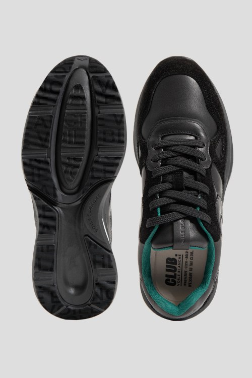 Детали: Мужские черные кроссовки из натуральной кожи и замши от Voile Blanche (Вуаль Бланш). Закругленный носок, спереди классическая шнуровка, замшевые вставки, резиновая подошва, подкладка из текстиля и кожи