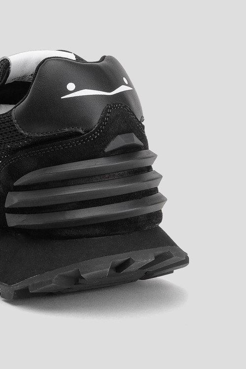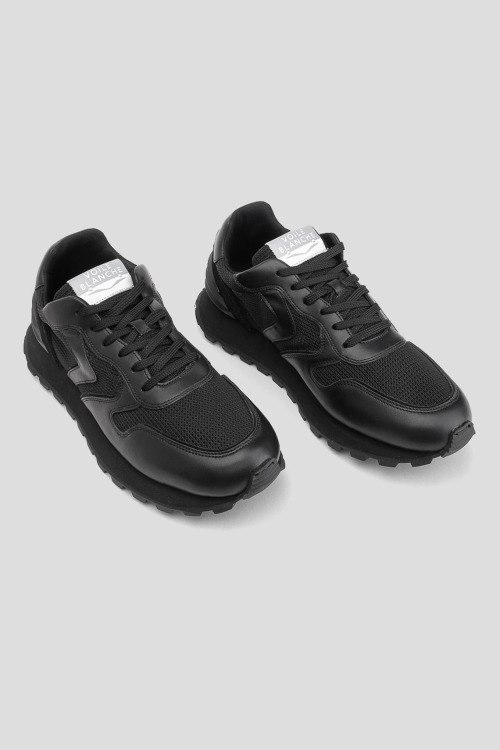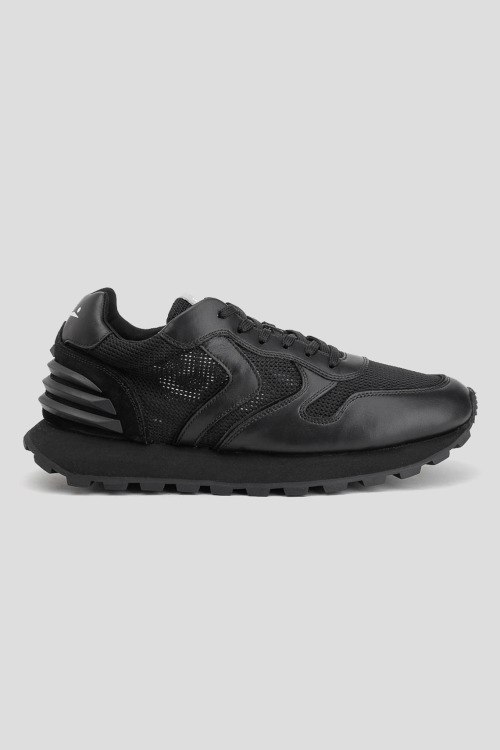 Детали: Мужские черные кроссовки из текстиля и кожи от Voile Blanche (Вуаль Бланш). Комбинация материалов, закругленный носок, спереди шнуровка, патч-лого, рельефная подошва