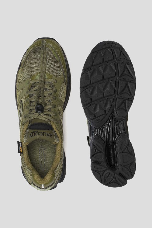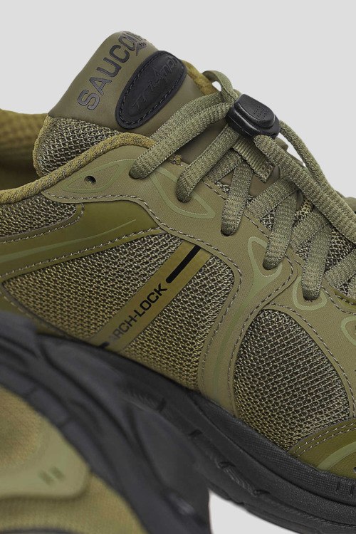 Детали: Мужские кроссовки ProGrid Triumph 4 цвета хаки из текстиля и замши от Saucony (Сайкони). Дизайн в виде комбинации цветов и материалов, закругленный носок, спереди классическая шнуровка, патч-лого, рельефная подошва