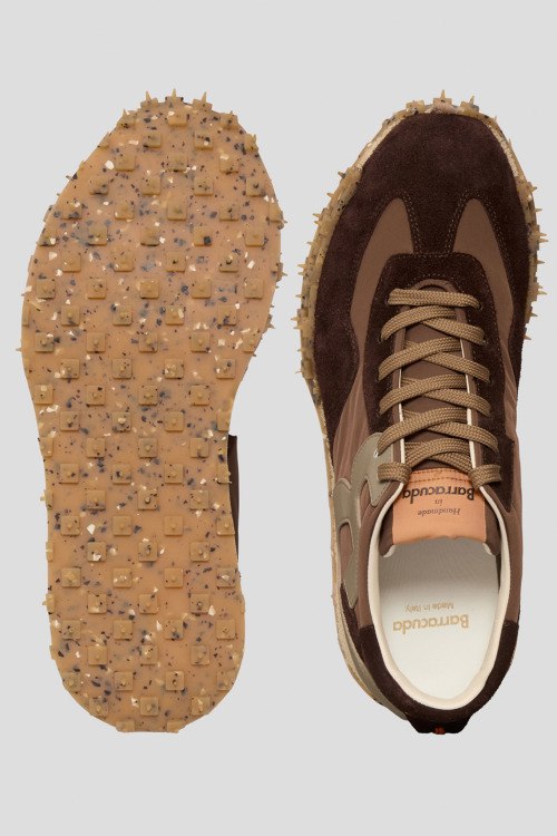 Детали: Мужские темно-коричневые кроссовки из текстиля и замши от Barracuda (Барракуда). Комбинация цветов и материалов, логотип на язычке и на пятке, классическая шнуровка, закругленный носок, шипованная подошва. Высота подошвы: 4 см