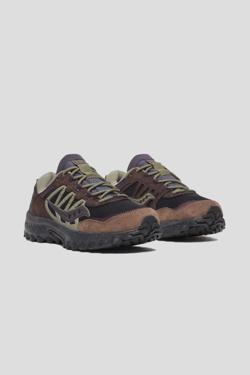 Детали: Мужские темно-коричневые кроссовки Grid Peak от Saucony (Сайкони). Комбинация материалов, закругленный носок, спереди классическая шнуровка, резиновая подошва, логотип бренда