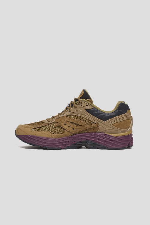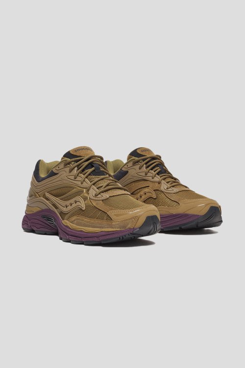 Детали: Мужские коричневые кроссовки из кожи и текстиля Progrid Omni 9 от Saucony (Сайкони). Комбинация материалов, логотип сбоку и на язычке, классическая шнуровка, закругленный носок, резиновая подошва