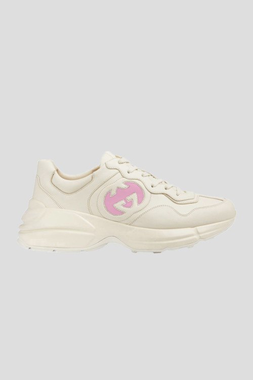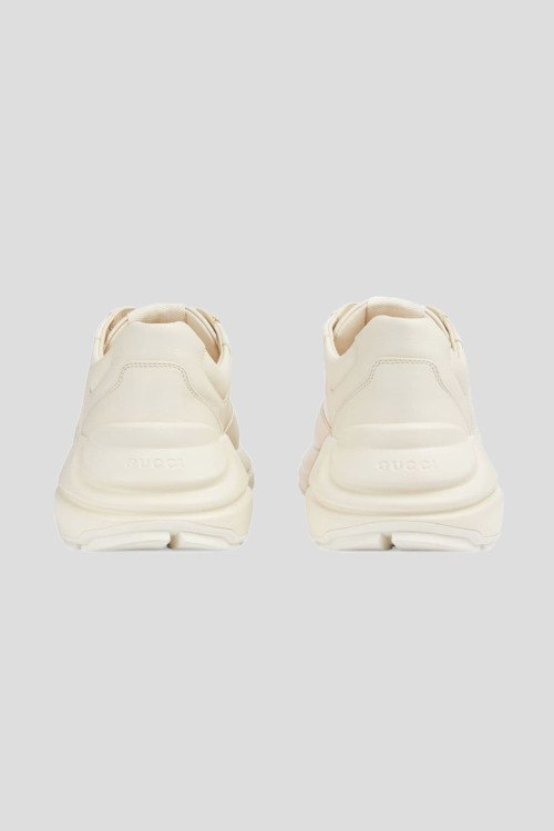 Детали: Мужские кожаные кроссовки молочного оттенка Rhyton от Gucci (Гуччи). Кроссовки Rhyton в стиле ретро представлены в коже цвета слоновой кости. Модель в контрастных цветах дополнена вырезанной деталью в форме переплетенных букв G, которая привносит символику Дома Gucci в дизайн узнаваемых кроссовок. Гладкая кожа, классическая шнуровка, миндалевидный носок, подошва в тон кроссовок. Размерная сетка Gucci, соответствие европейским размерам: размер 6 - EU 40, размер 7 - EU 41, размер 8 - EU 42, размер 9 - EU 43, размер 10 - EU 44, размер 11 - EU 45