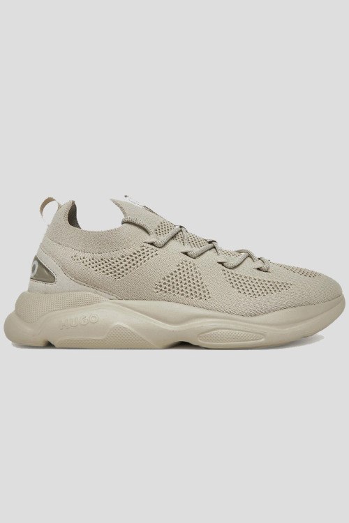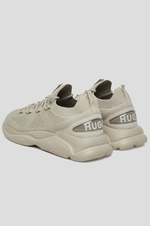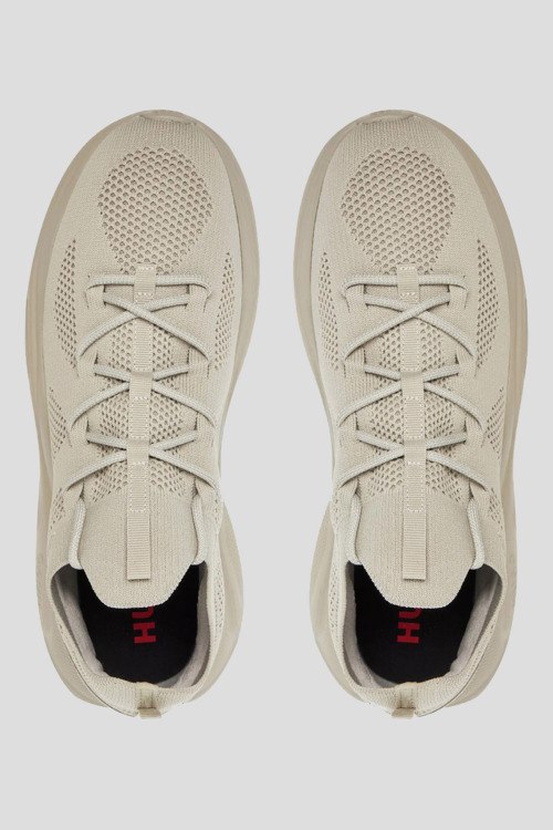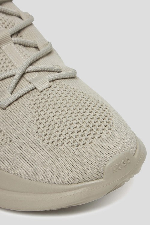 Детали: Мужские текстильные кроссовки молочного оттенка Leon от Hugo by Hugo Boss (Хуго бай Хуго Босс). Логотип на пятке, классическая шнуровка, две петли для подтягивания, закругленный носок, брендированная подошва
