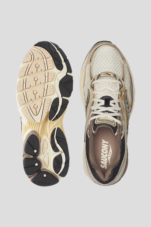 Детали: Мужские кремовые текстильные кроссовки Progrid Omni 9 от Saucony (Сайкони). Комбинация цветов и материалов, логотип сбоку и на язычке, классическая шнуровка, закругленный носок, резиновая подошва