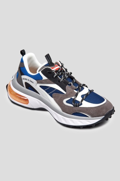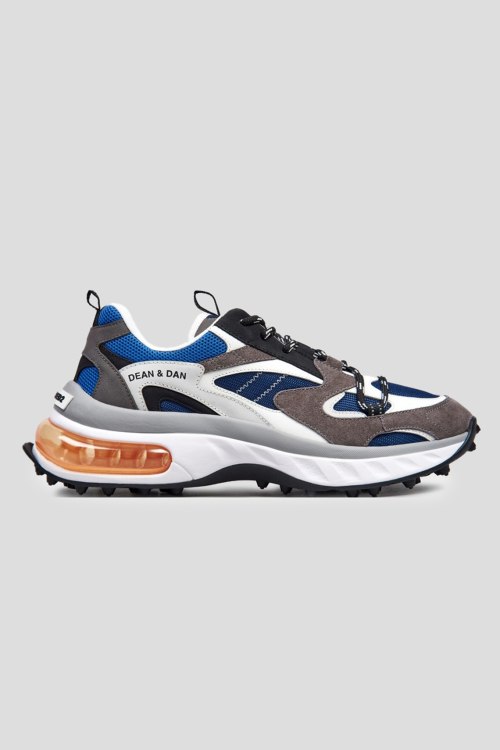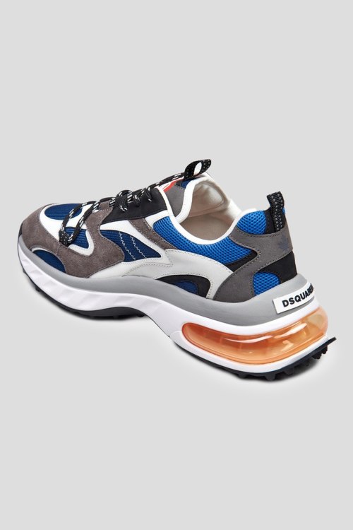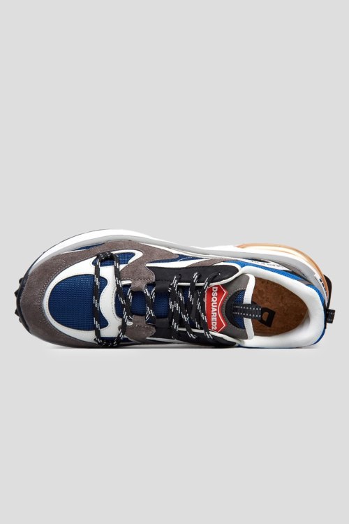 Детали: Мужские разноцветные кроссовки из замши и текстиля от Dsquared2 (Дискваред). Комбинация цветов и материалов, логотип сбоку и на язычке, классическая шнуровка, две петли для подтягивания, закругленный носок