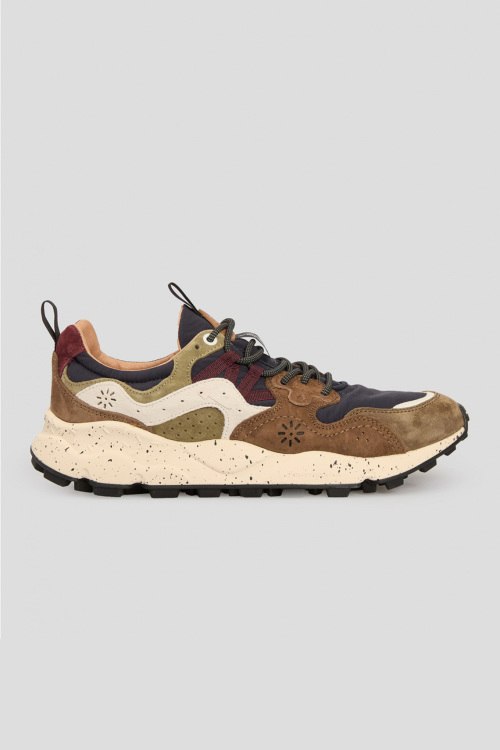 Детали: Мужские сене-коричневые кроссовки из натуральной кожи и текстиля от Flower Mountain (Флауэр Маунтин). Дизайн в виде комбинации цветов и материалов, закругленный носок, спереди шнуровка, патч-лого, петли для подтягивания, рельефная подошва. Высота подошвы: 3,5 см