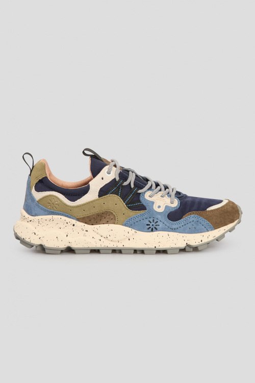 Детали: Мужские разноцветные кроссовки из натуральной кожи и текстиля от Flower Mountain (Флауэр Маунтин). Дизайн в виде комбинации цветов и материалов, закругленный носок, спереди шнуровка, патч-лого, петли для подтягивания, рельефная подошва. Высота подошвы: 4 см