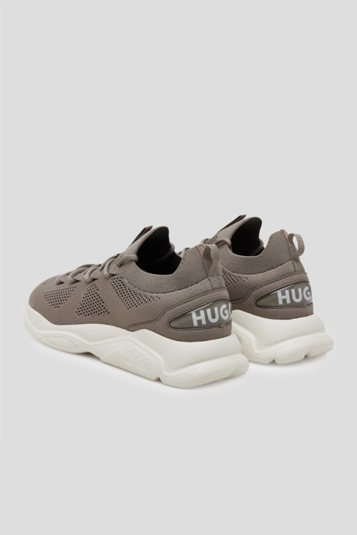 Детали: Мужские серо-коричневые текстильные кроссовки Leon от Hugo by Hugo Boss (Хуго бай Хуго Босс). Логотип на пятке, классическая шнуровка, две петли для подтягивания, закругленный носок, брендированная подошва