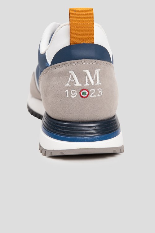 Детали: Мужские серо-синие кроссовки из текстиля и экозамши от Aeronautica Militare (Аэронавтика Милитари). Комбинация цветов и материалов, логотип сбоку и на язычке, классическая шнуровка, петля для подтягивания сзади, закругленный носок, ребристая подошва