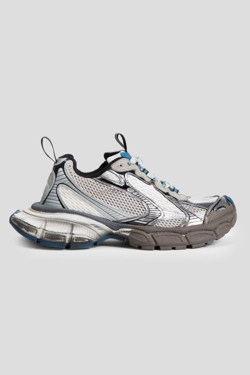 Детали: Мужские серо-белые текстильные кроссовки 3XL от Balenciaga (Баленсиага). Сетчатый верх с резиновыми вставками, две петли для подтягивания, нашивка с патч-лого на язычке, классическая шнуровка, закругленный носок, фигурная подошва