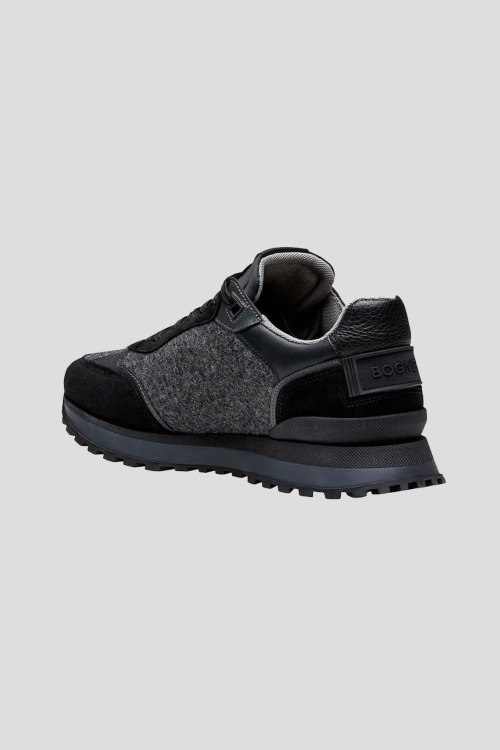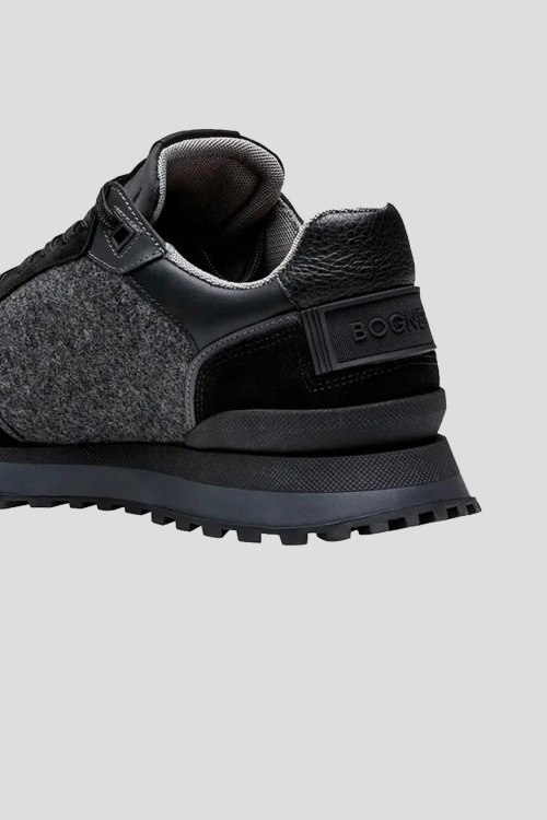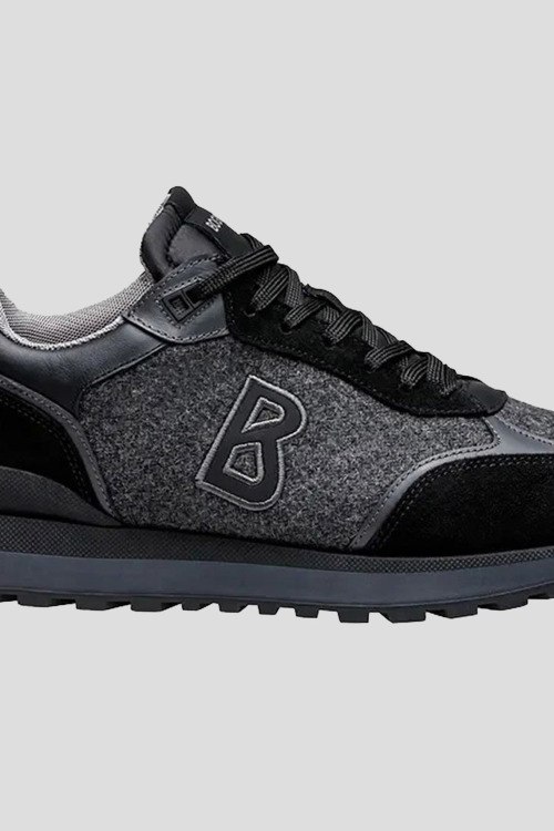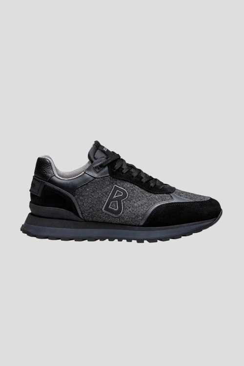 Детали: Мужские серо-черные кроссовки из замши и текстиля Newport от Bogner (Богнер). Комбинация цветов и материалов, логотип сбоку и на язычке, классическая шнуровка, закругленный носок