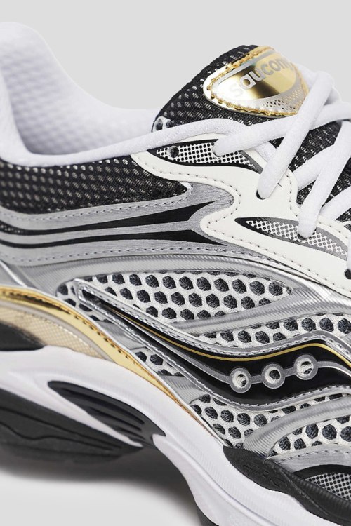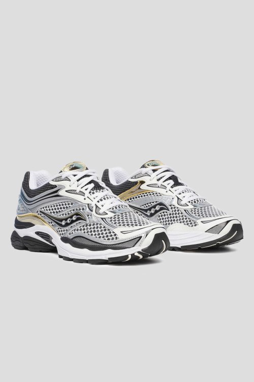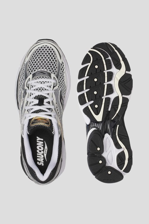 Детали: Мужские серые текстильные кроссовки Progrid Omni 9 от Saucony (Сайкони). Комбинация цветов и материалов, логотип сбоку и на язычке, классическая шнуровка, закругленный носок, резиновая подошва