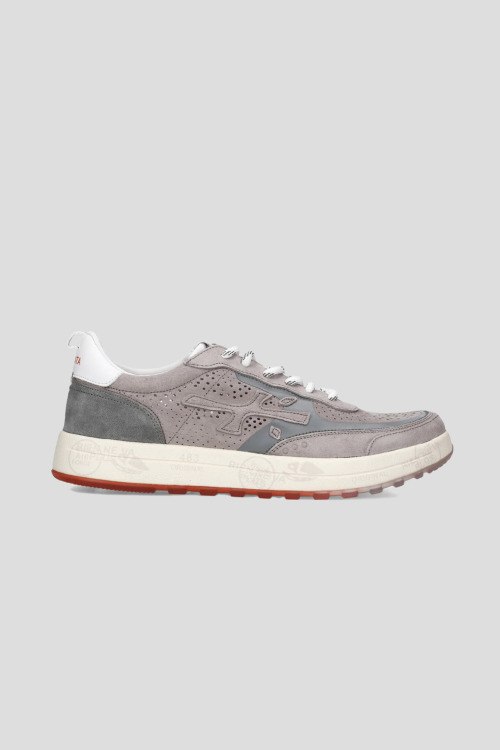 Детали: Мужские светло-серые кроссовки Nous из натуральной замши от Premiata (Премиата). Перфорированный дизайн, закругленный носок, комбинация материалов и цветов, спереди классическая шнуровка, резиновая подошва, патч-лого