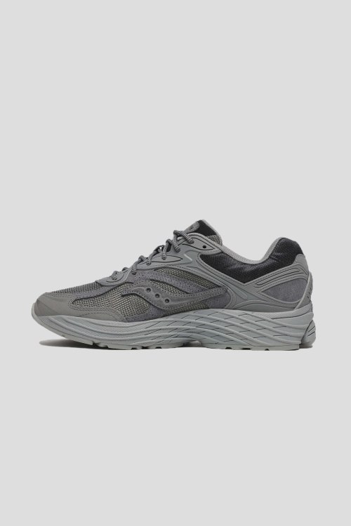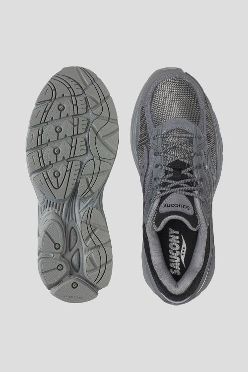 Детали: Мужские серые кроссовки из кожи и текстиля Progrid Omni 9 от Saucony (Сайкони). Комбинация материалов, логотип сбоку и на язычке, классическая шнуровка, закругленный носок, резиновая подошва