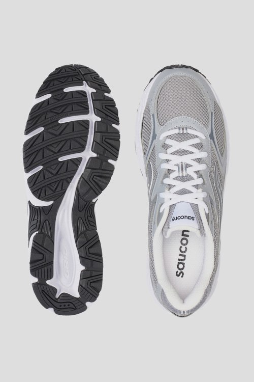 Детали: Мужские серые кроссовки Tempest от Saucony (Сайкони). Комбинация материалов, закругленный носок, спереди классическая шнуровка, логотип бренда, резиновая подошва,