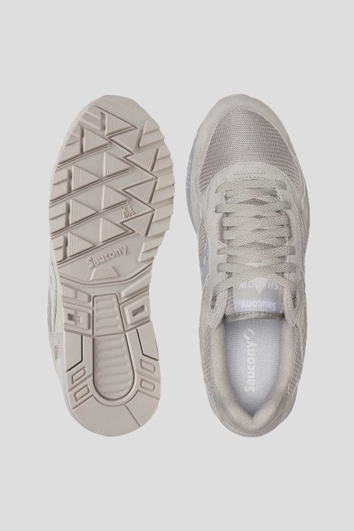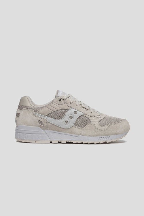 Мужские светло-серые кроссовки Shadow 5000 из замши и текстиля от Saucony (Сайкони). Комбинация материалов, логотип на язычке и на пятке, классическая шнуровка, закругленный носок, резиновая подошва