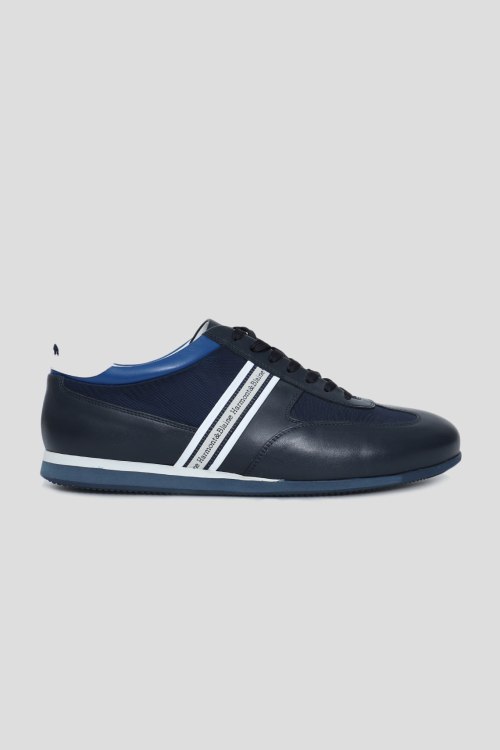 Детали: Мужские темно-синие кроссовки из натуральной кожи и текстиля от Harmont & Blaine (Хармон энд Блэйн). Нашивки с логотипом по бокам,классическая шнуровка, закругленный носок